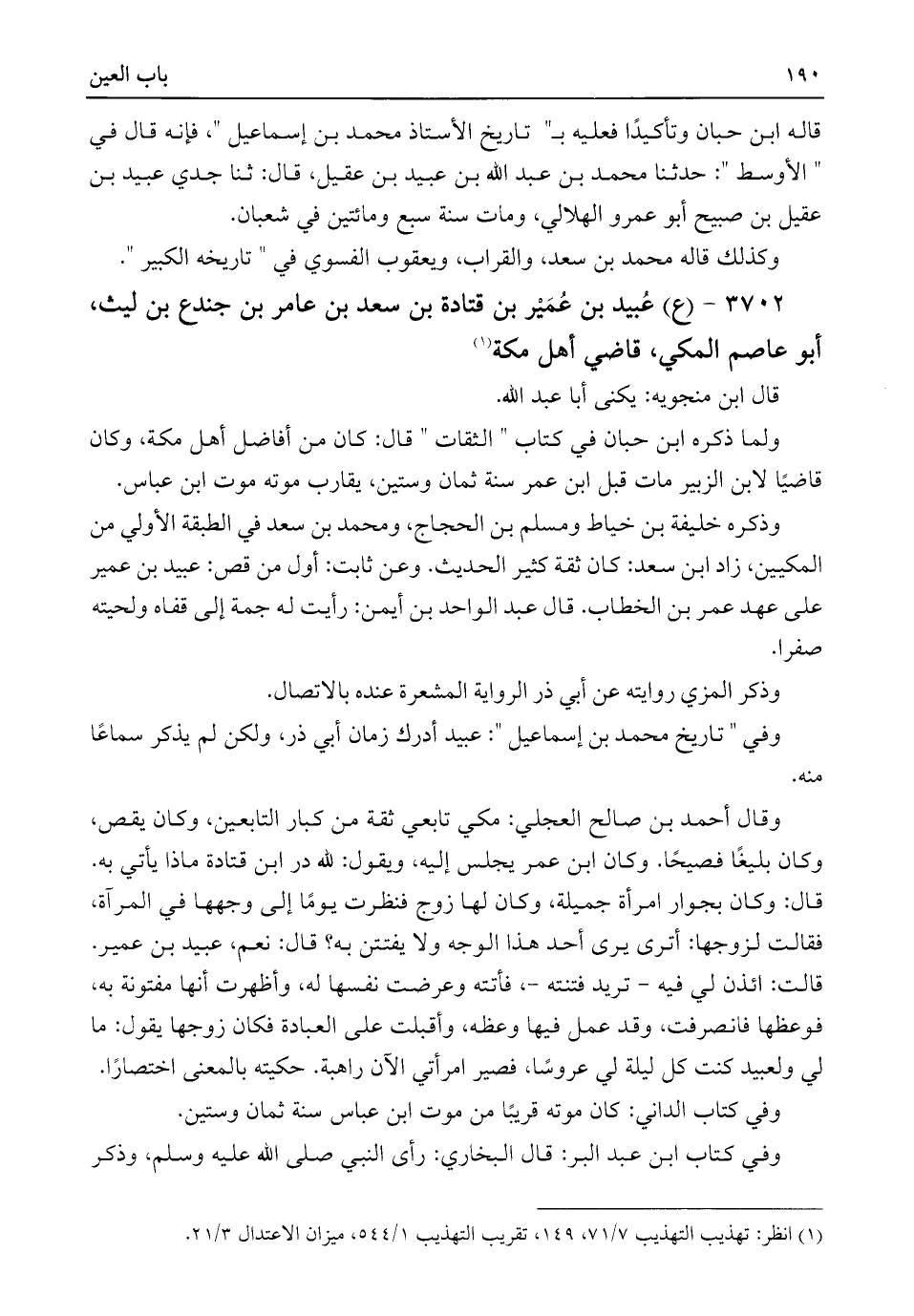 ٣٧٠٢ - (ع) عُبيد بن عُمَيْر بن قتادة بن سعد بن عامر بن جندع بن ليث، أبو عاصم المكي، قاضي أهل مكة (¬١)