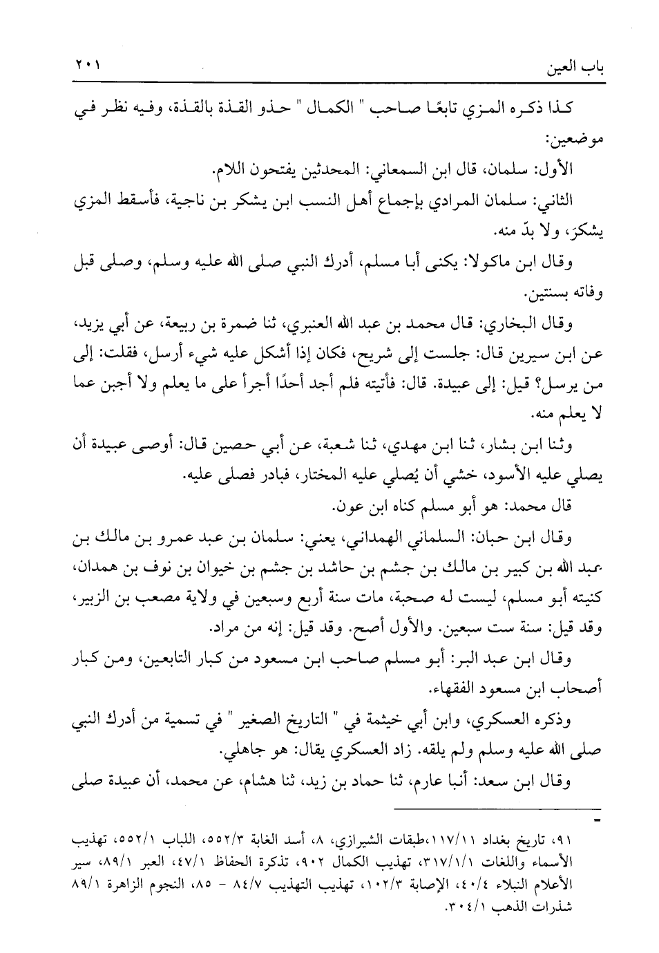 الثاني: سلمان المرادي بإجماع أهل النسب ابن يشكر بن ناجية، فأسقط المزي يشكرَ، ولا بدّ منه.
