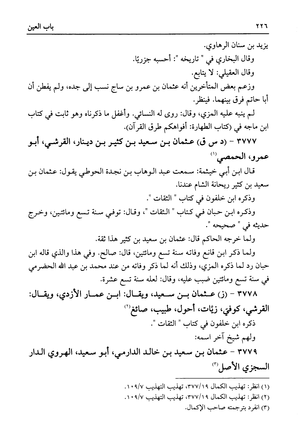 ٣٧٧٧ - (د س ق) عثمان بن سعيد بن كثير بن دينار، القرشي، أبو عمرو، الحمصي (¬١)