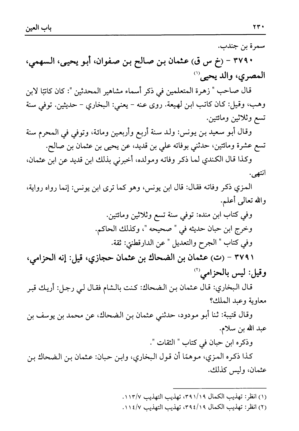 ٣٧٩٠ - (خ س ق) عثمان بن صالح بن صفوان، أبو يحيى، السهمي، المصري، والد يحيى (¬١)