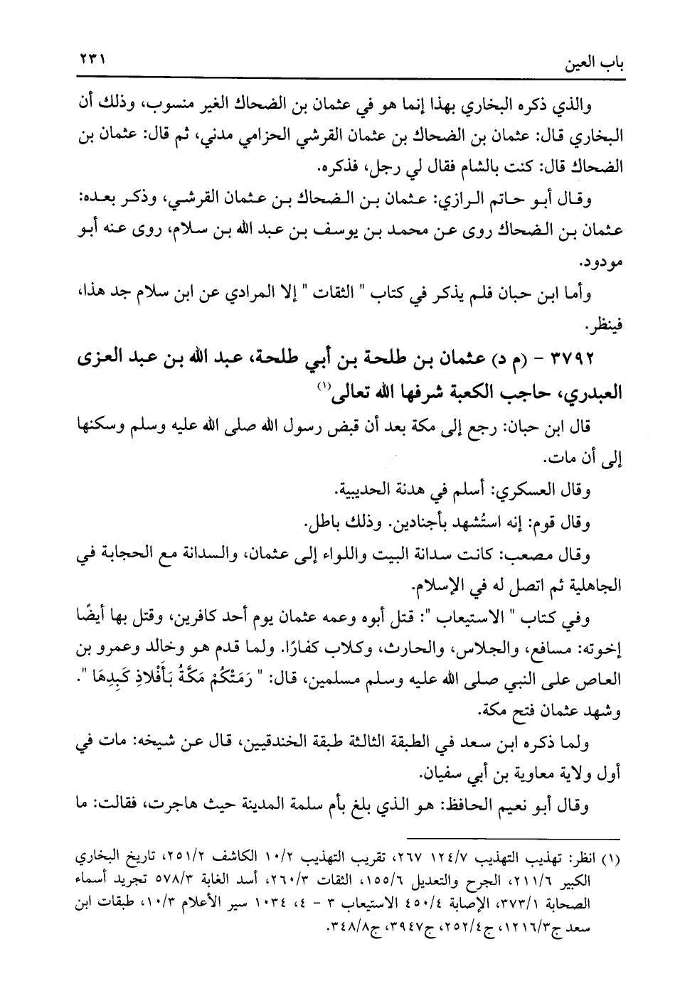 ٣٧٩٢ - (م د) عثمان بن طلحة بن أبي طلحة، عبد اللَّه بن عبد العزى العبدري، حاجب الكعبة شرفها اللَّه تعالى (¬١)