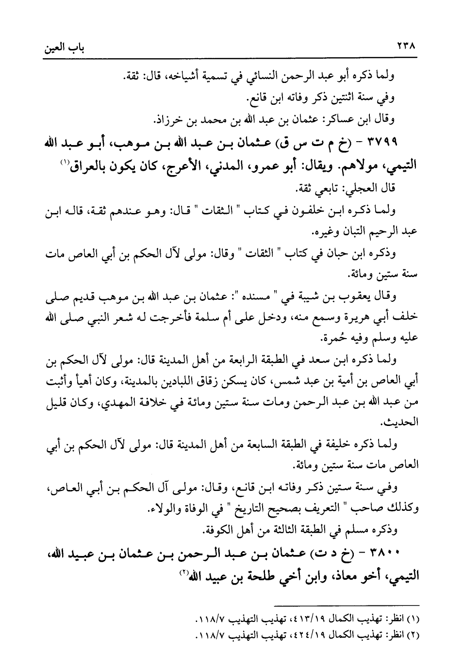 (¬٢) انظر: تهذيب الكمال ١٩/ ٤٢٤، تهذيب التهذيب ٧/ ١١٨.