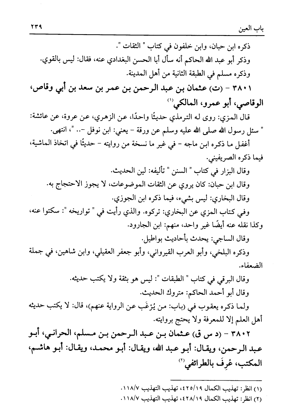 ٣٨٠١ - (ت) عثمان بن عبد الرحمن بن عمر بن سعد بن أبي وقاص، الوقاصي، أبو عمرو، المالكي (¬١)