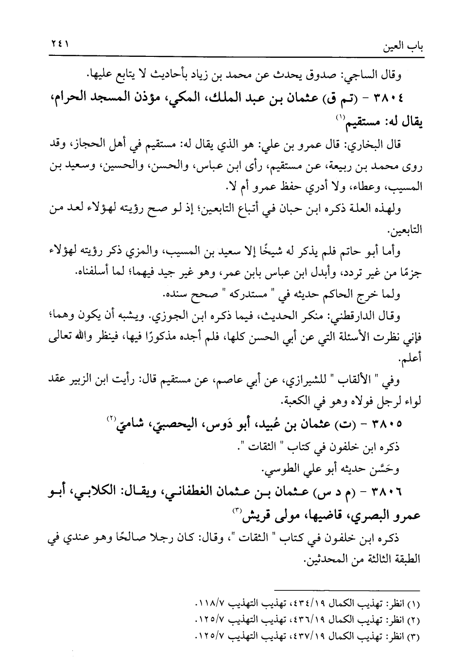 ٣٨٠٤ - (تم ق) عثمان بن عبد الملك، المكي، مؤذن المسجد الحرام، يقال له: مستقيم (¬١)