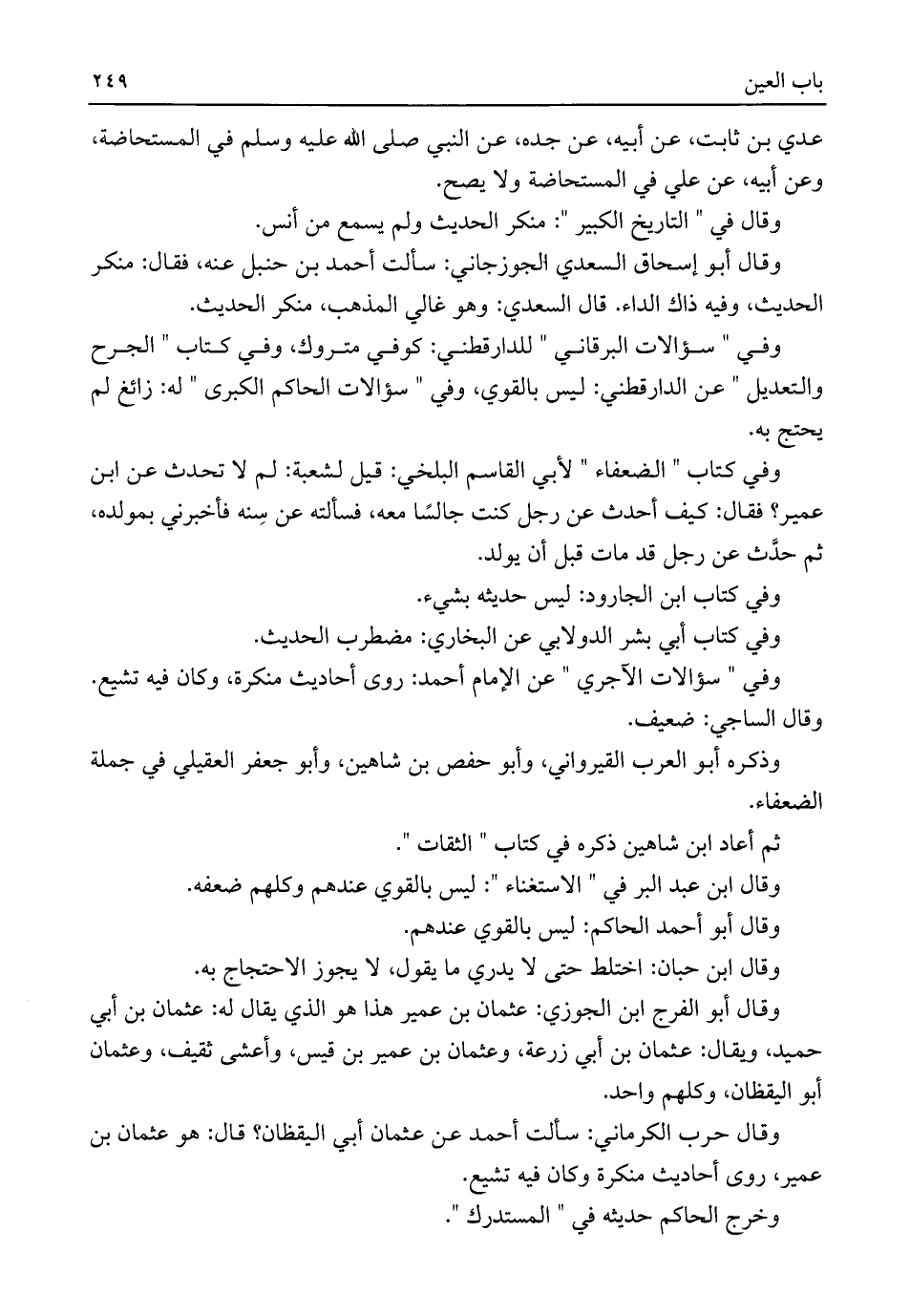وقال حرب الكرماني: سألت أحمد عن عثمان أبي اليقظان؟ قال: هو عثمان بن عمير، روى أحاديث منكرة وكان فيه تشيع.