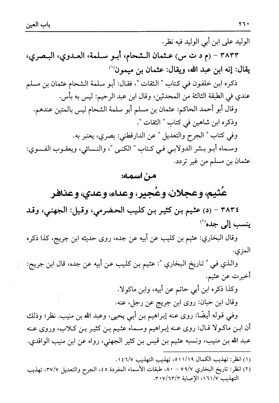 ٣٨٣٣ - (م د ت س) عثمان الشحام، أبو سلمة، العدوي، البصري، يقال: إنه ابن عبد اللَّه، ويقال: عثمان بن ميمون (¬١)