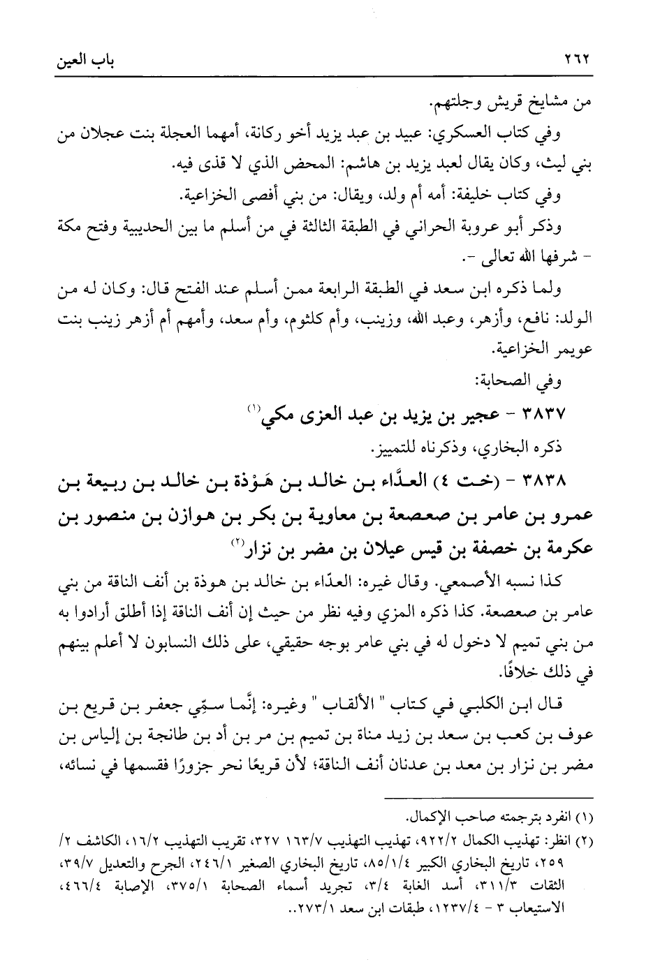 ٣٨٣٨ - (خت ٤) العدَّاء بن خالد بن هَوْذة بن خالد بن ربيعة بن عمرو بن عامر بن صعصعة بن معاوية بن بكر بن هوازن بن منصور بن عكرمة بن خصفة بن قيس عيلان بن مضر بن نزار (¬٢)