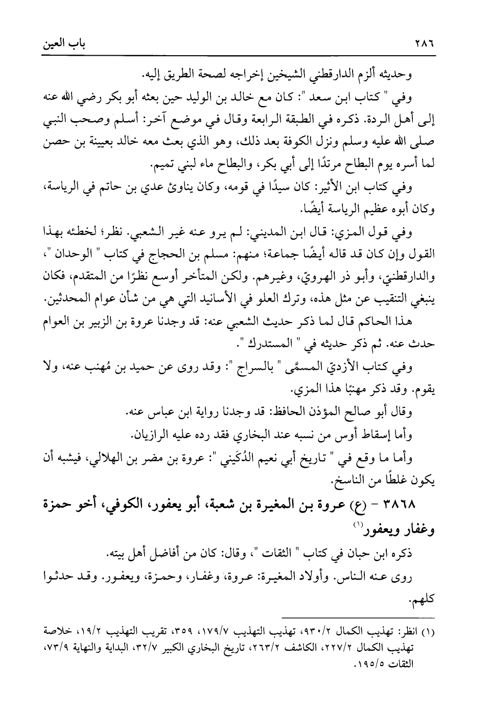 ٣٨٦٨ - (ع) عروة بن المغيرة بن شعبة، أبو يعفور، الكوفي، أخو حمزة وغفار ويعفور (¬١)
