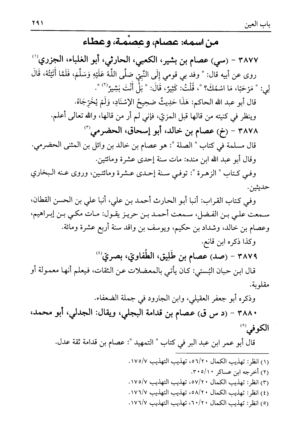 ٣٨٨٠ - (د س ق) عصام بن قدامة البجلي، ويقال: الجدلي، أبو محمد، الكوفي (¬٥)