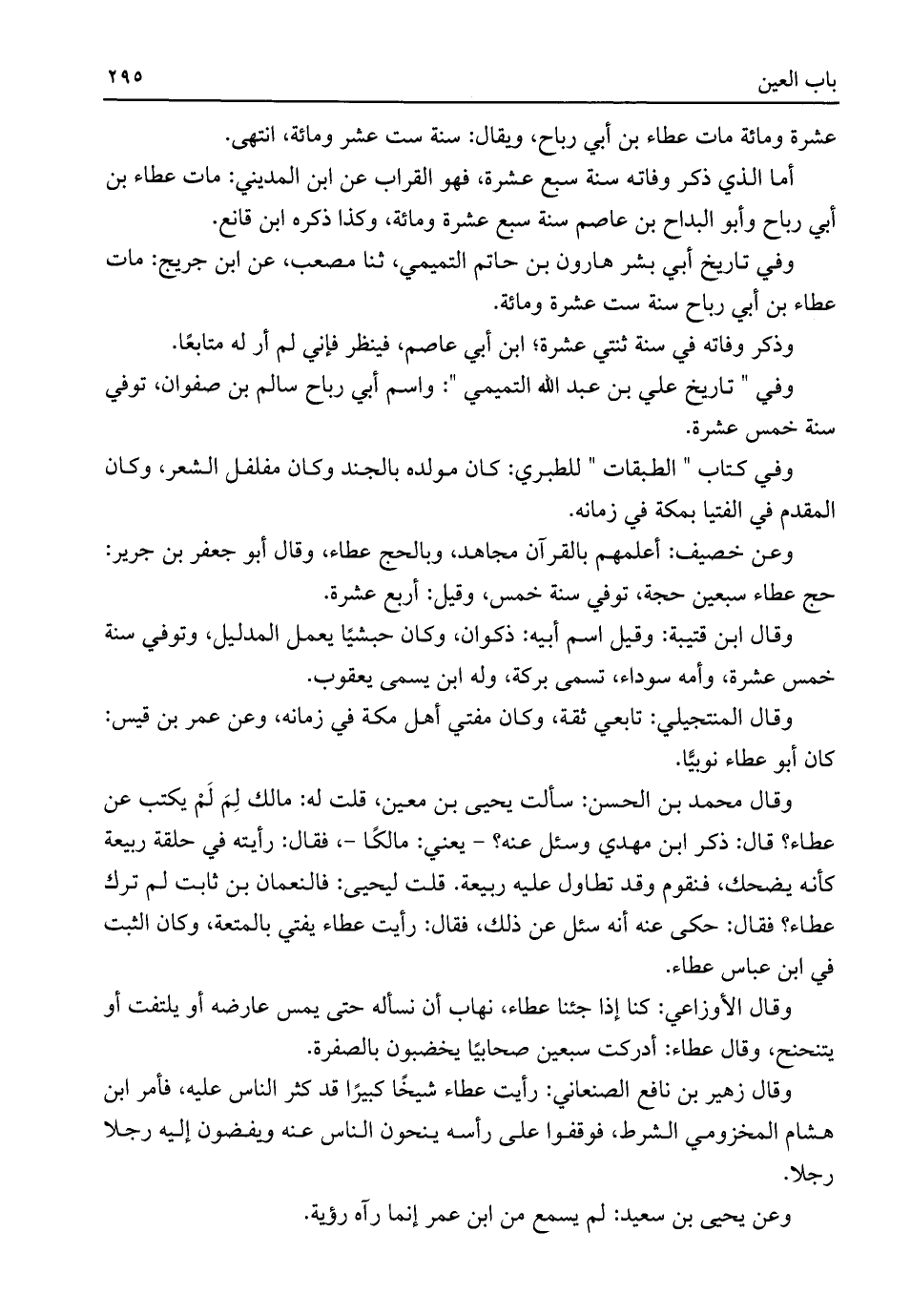 وفي تاريخ أبي بشر هارون بن حاتم التميمي، ثنا مصعب، عن ابن جريج: مات عطاء بن أبي رباح سنة ست عشرة ومائة.