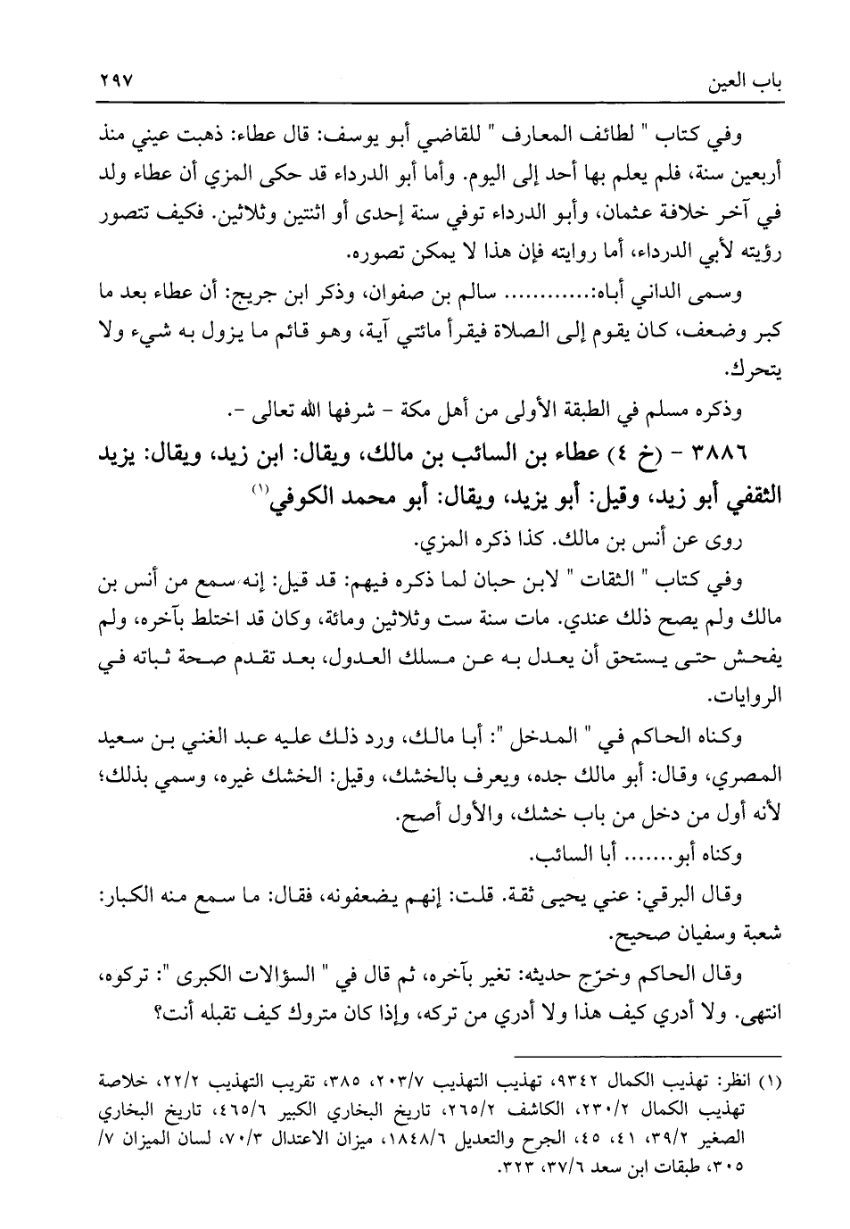 (¬١) انظر: تهذيب الكمال ٩٣٤٢، تهذيب التهذيب ٧/ ٢٠٣، ٣٨٥، تقريب التهذيب ٢/ ٢٢، خلاصة تهذيب الكمال ٢/ ٢٣٠، الكاشف ٢/ ٢٦٥، تاريخ البخاري الكبير ٦/ ٤٦٥، تاريخ البخاري الصغير ٢/ ٣٩، ٤١، ٤٥، الجرح والتعديل ٦/ ١٨٤٨، ميزان الاعتدال ٣/ ٧٠، لسان الميزان ٧/ ٣٠٥، طبقات ابن سعد ٦/ ٣٧، ٣٢٣.