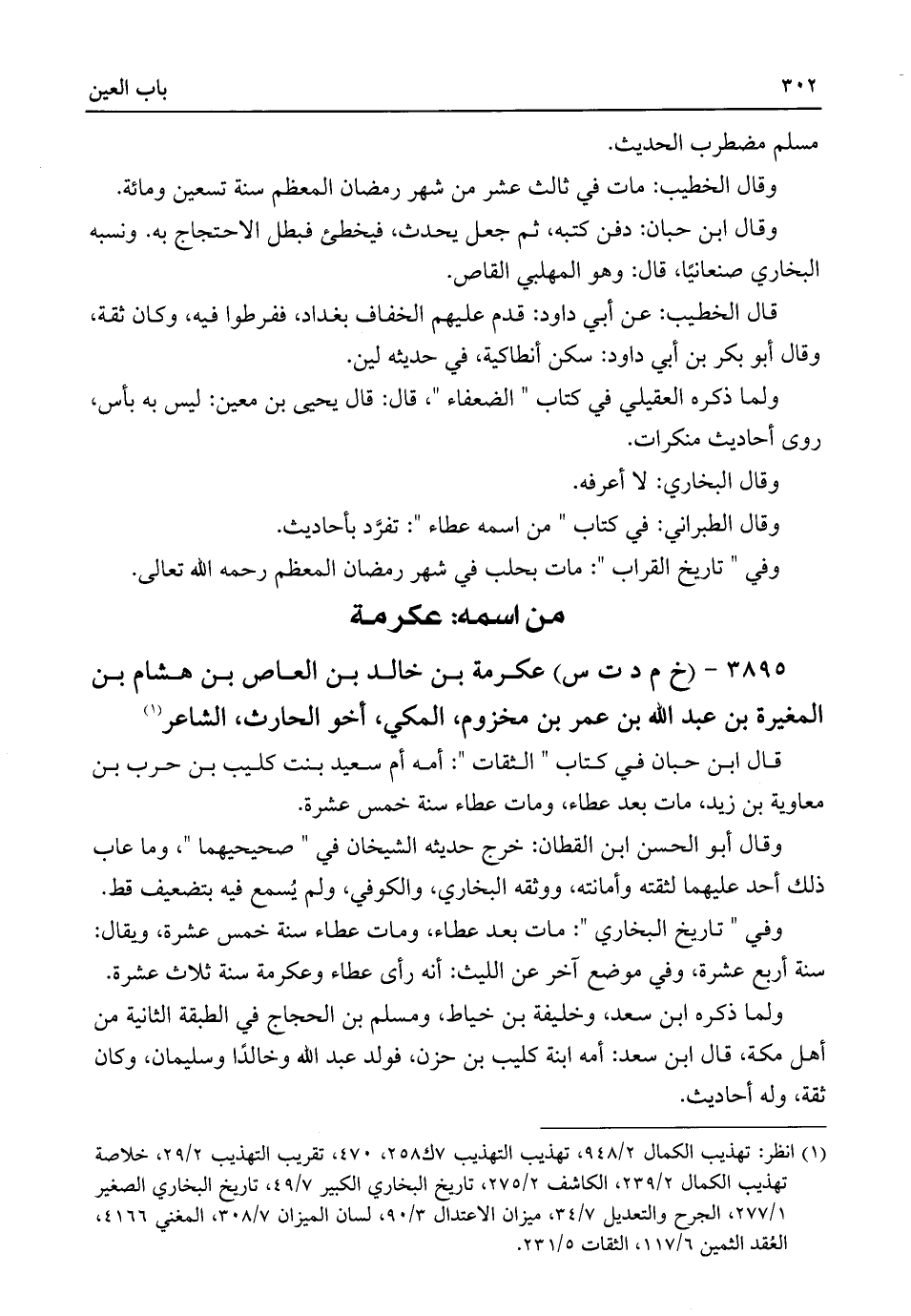 ٣٨٩٥ - (خ م د ت س) عكرمة بن خالد بن العاص بن هشام بن المغيرة بن عبد اللَّه بن عمر بن مخزوم، المكي، أخو الحارث، الشاعر (¬١)