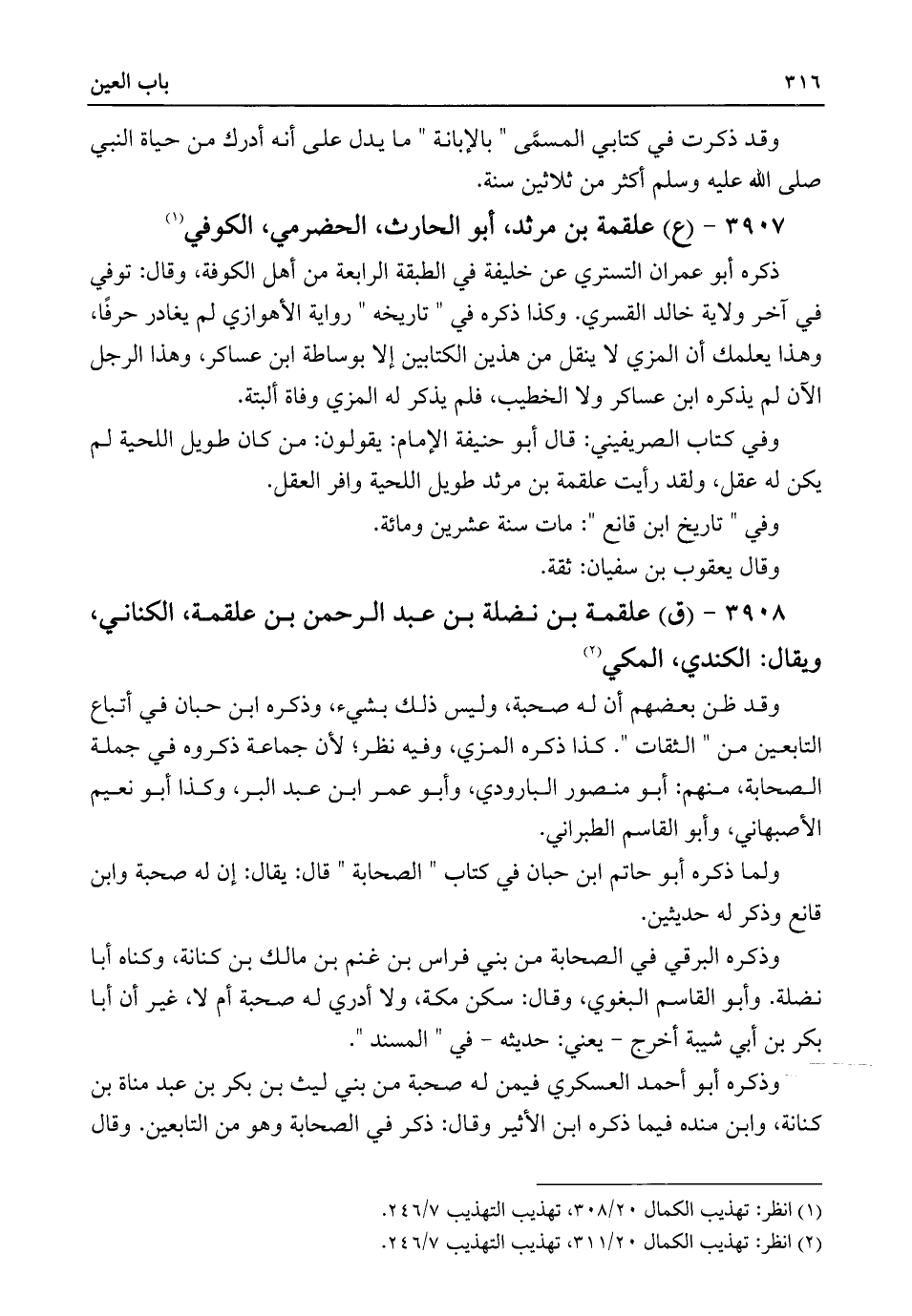 (¬٢) انظر: تهذيب الكمال ٢٠/ ٣١١، تهذيب التهذيب ٧/ ٢٤٦.