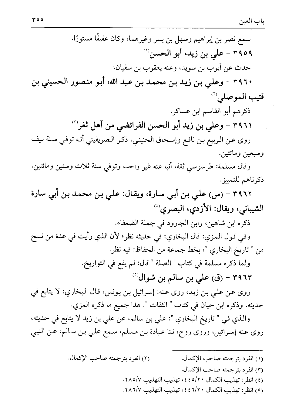 (¬٥) انظر: تهذيب الكمال ٢٠/ ٤٤٦، تهذيب التهذيب ٧/ ٢٨٦.