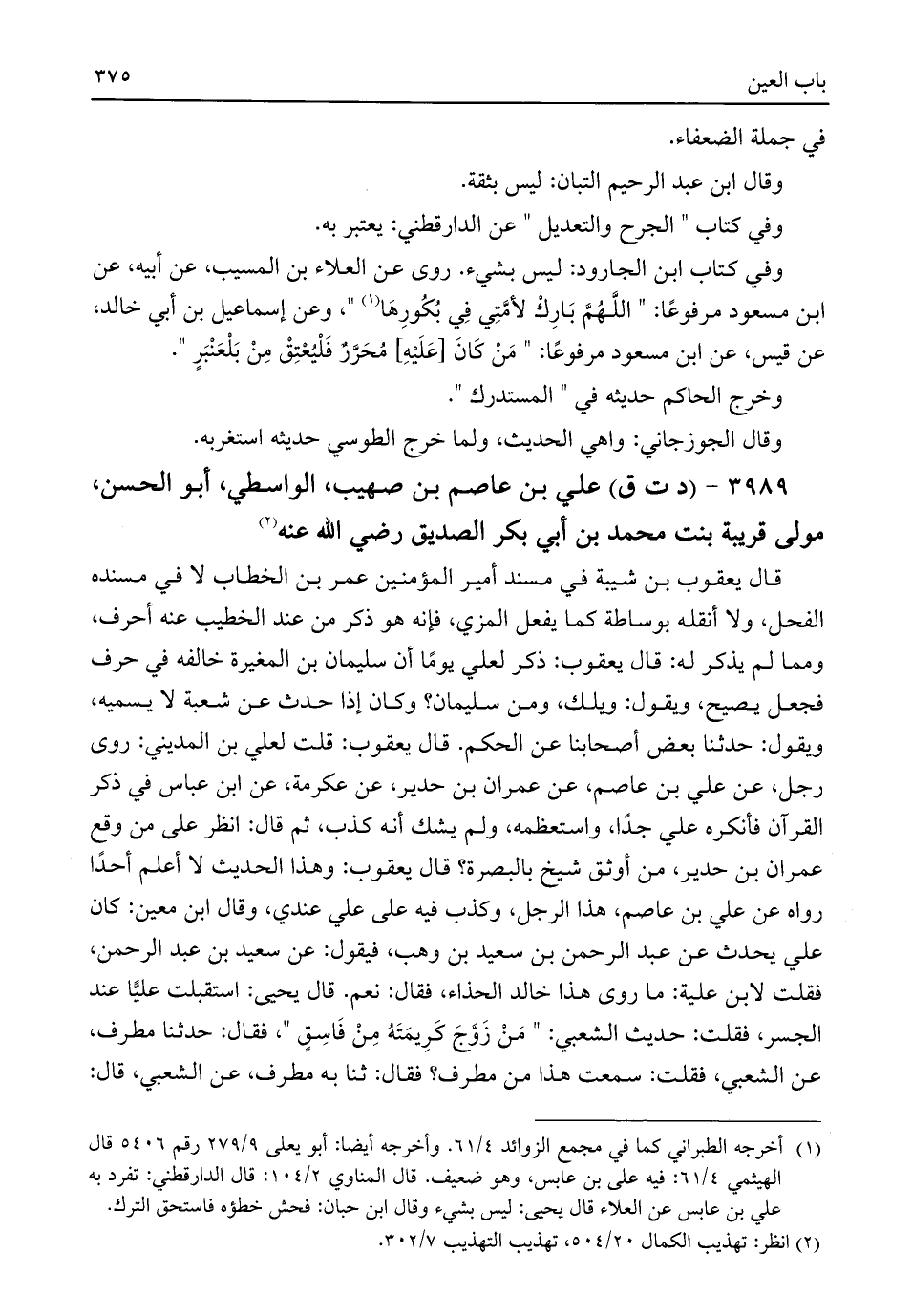 (¬٢) انظر: تهذيب الكمال ٢٠/ ٥٥٤، تهذيب التهذيب ٧/ ٣٠٢.