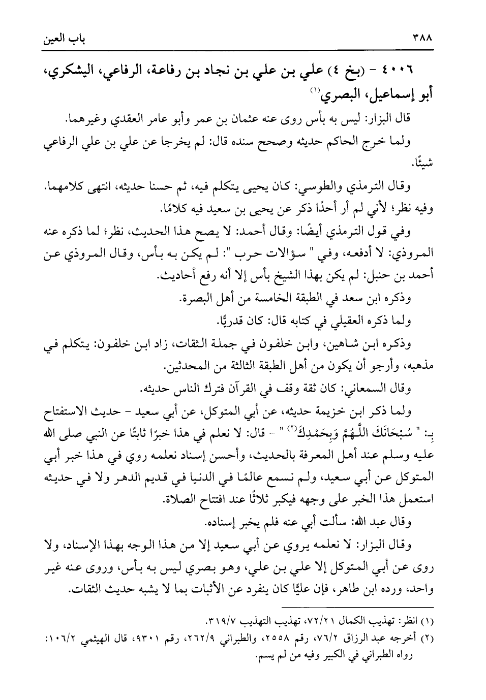٤٠٠٦ - (بخ ٤) علي بن علي بن نجاد بن رفاعة، الرفاعي، اليشكري، أبو إسماعيل، البصري (¬١)
