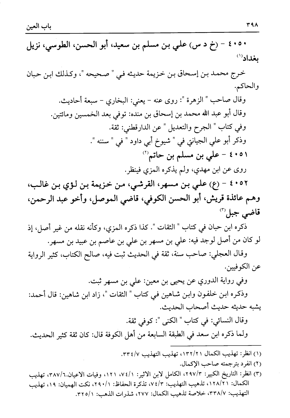 (¬٣) انظر: التاريخ الكبير: ٣/ ٢٩٧، الكامل لابن الأثير: ١/ ٧٤، ١٢١، وفيات الأعيان ٦/ ٣٨٧، تهذيب الكمال: ٢١/ ١٢٨، تذهيب التهذيب: ٣/ ٧٤، تذكرة الحفاظ: ١/ ٢٩٠، نكت الهميان: ١٩، تهذيب التهذيب: ٧/ ٣٣٨، خلاصة تذهيب الكمال: ٢٧٧، شذرات الذهب: ١/ ٣٢٥.