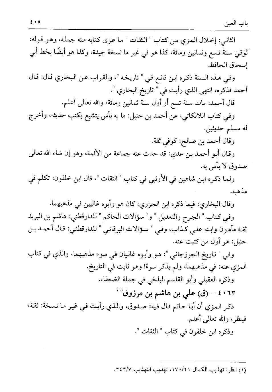 (¬١) انظر: تهذيب الكمال ٢١/ ١٧٠، تهذيب التهذيب ٧/ ٣٤٣.