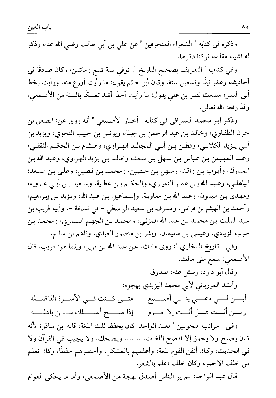 قال عبد الواحد: لم ير الناس أصدق لهجة من الأصمعي، وأما ما يحكي العوام