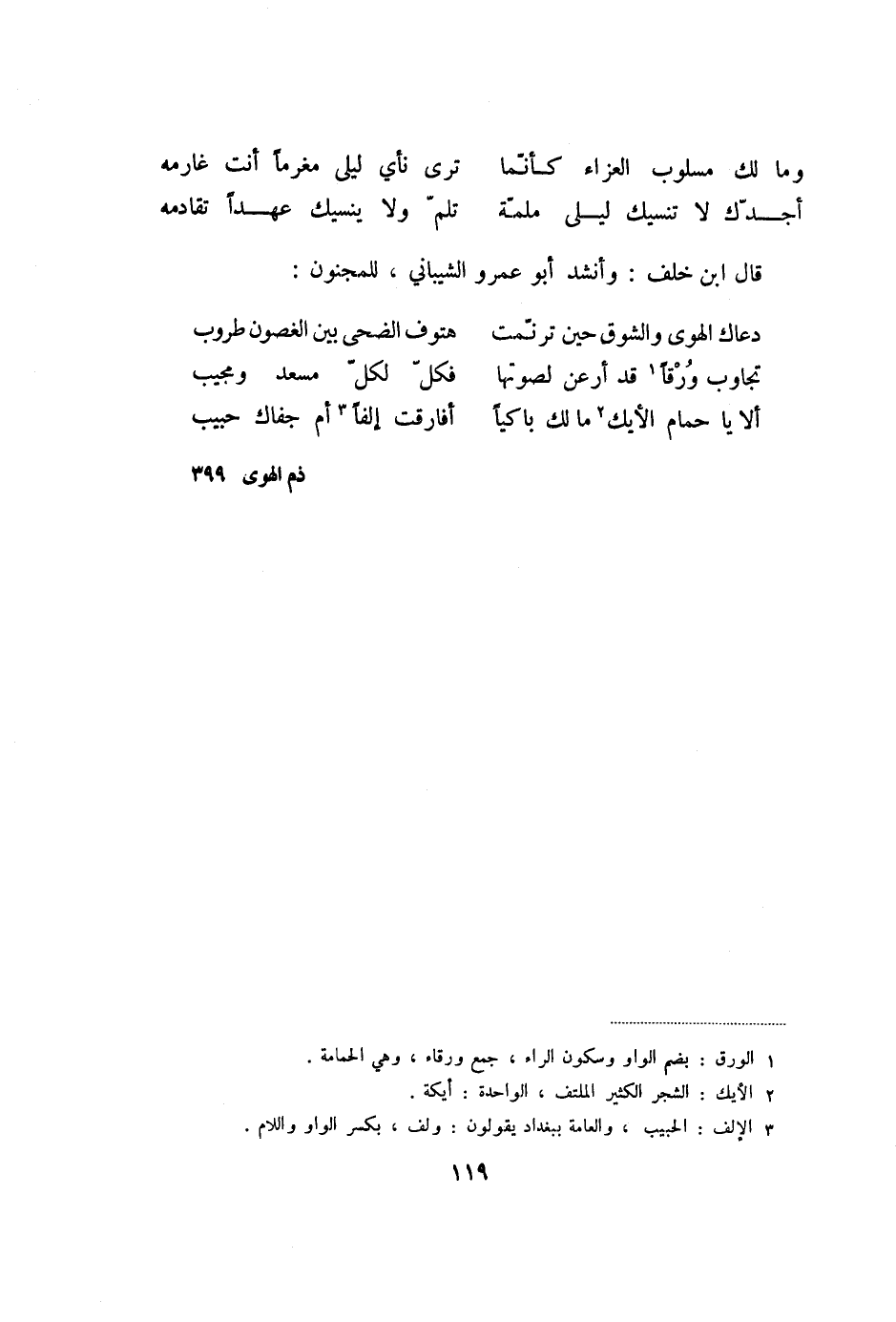 ألا يا حمام الأيك «2» ما لك باكيا ... أفارقت إلفا «3» أم جفاك حبيب
