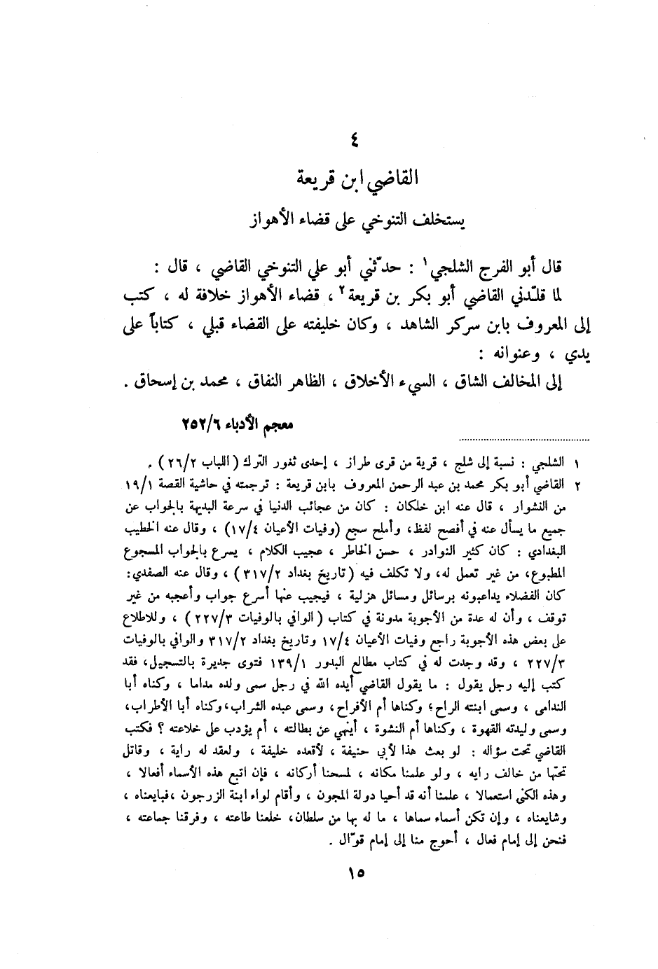 4 القاضي ابن قريعة يستخلف التنوخي على قضاء الأهواز
