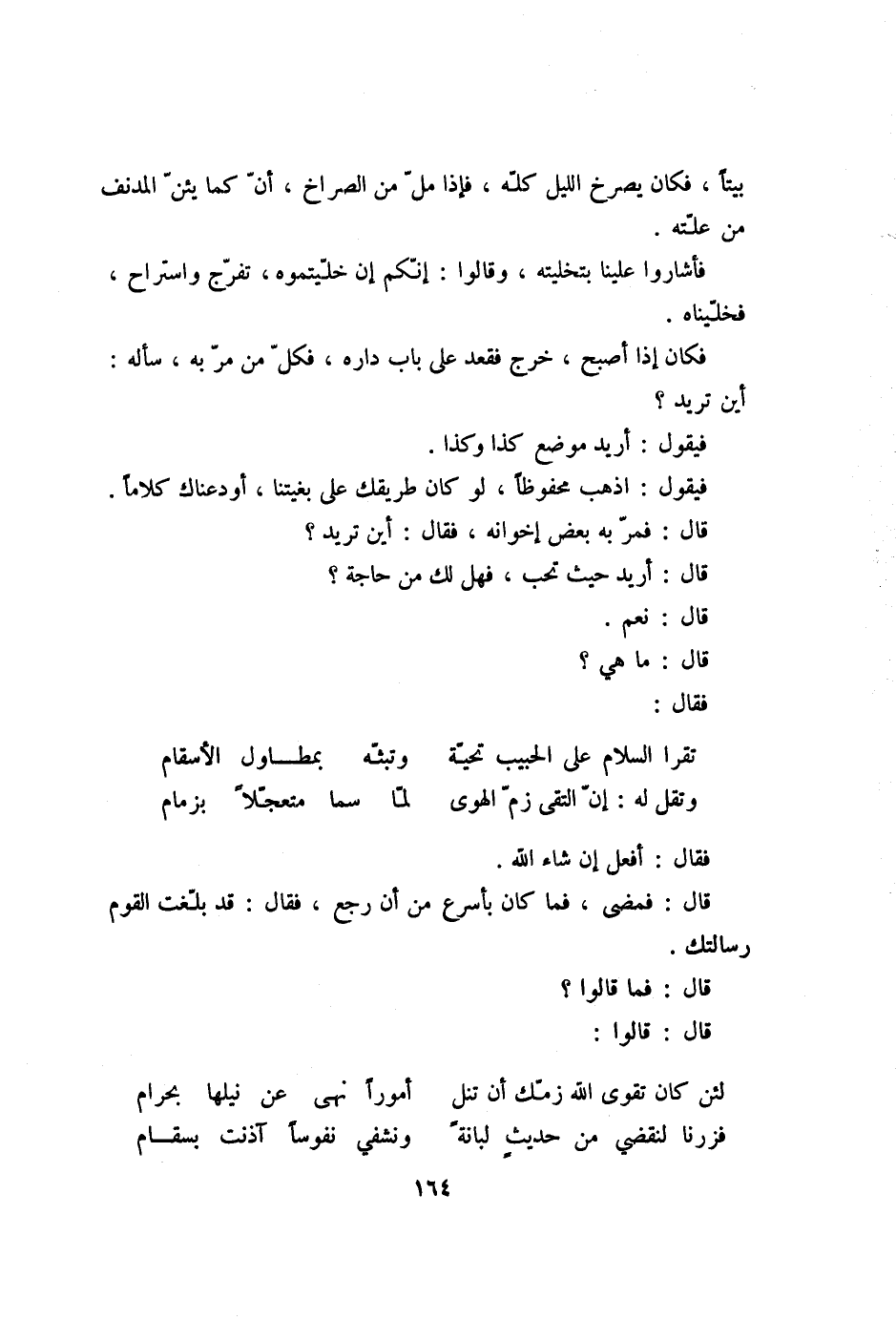 بيتا، فكان يصرخ الليل كلّه، فإذا ملّ من الصراخ، أنّ كما يئنّ المدنف من علّته.