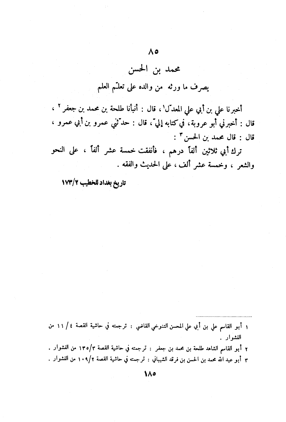 85 محمد بن الحسن يصرف ما ورثه من والده على تعلّم العلم