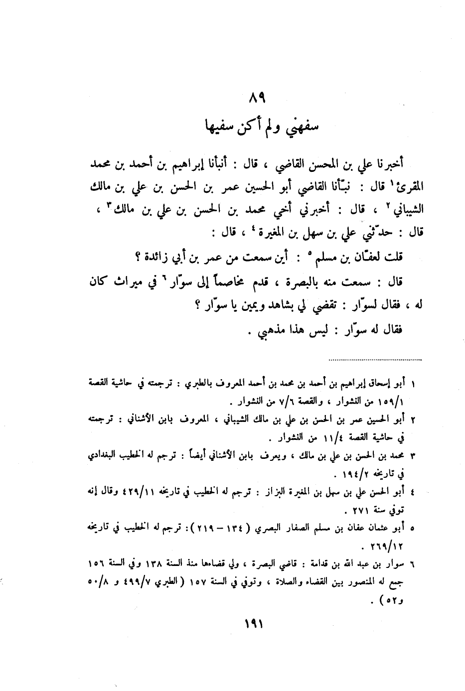 أخبرنا علي بن المحسن القاضي، قال: أنبأنا إبراهيم بن أحمد بن محمد المقرئ «1» قال: نبّأنا القاضي أبو الحسين عمر بن الحسن بن علي بن مالك الشيباني «2» ، قال: أخبرني أخي محمد بن الحسن بن علي بن مالك «3» ، قال: حدّثني علي بن سهل بن المغيرة «4» ، قال: