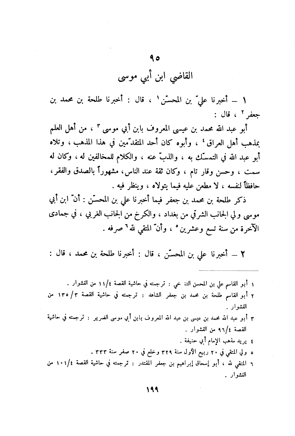 2- أخبرنا علي بن المحسّن، قال: أخبرنا طلحة بن محمد، قال: