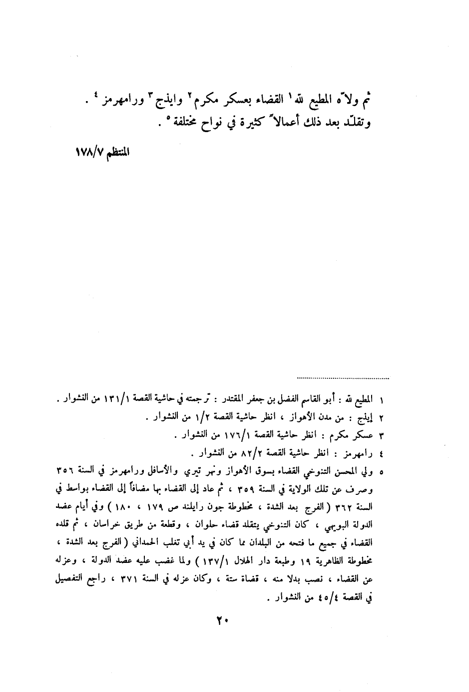 كتاب نشوار المحاضرة وأخبار المذاكرة (اسم الجزء: 5)