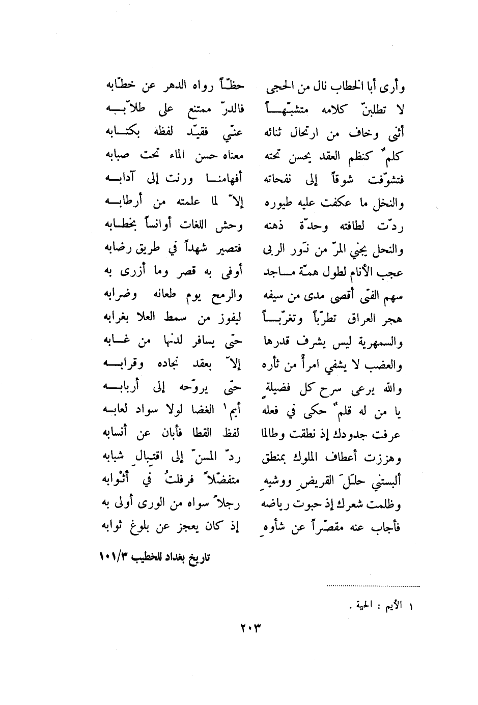 وأرى أبا الخطاب نال من الحجى ... حظّا رواه الدهر عن خطّابه