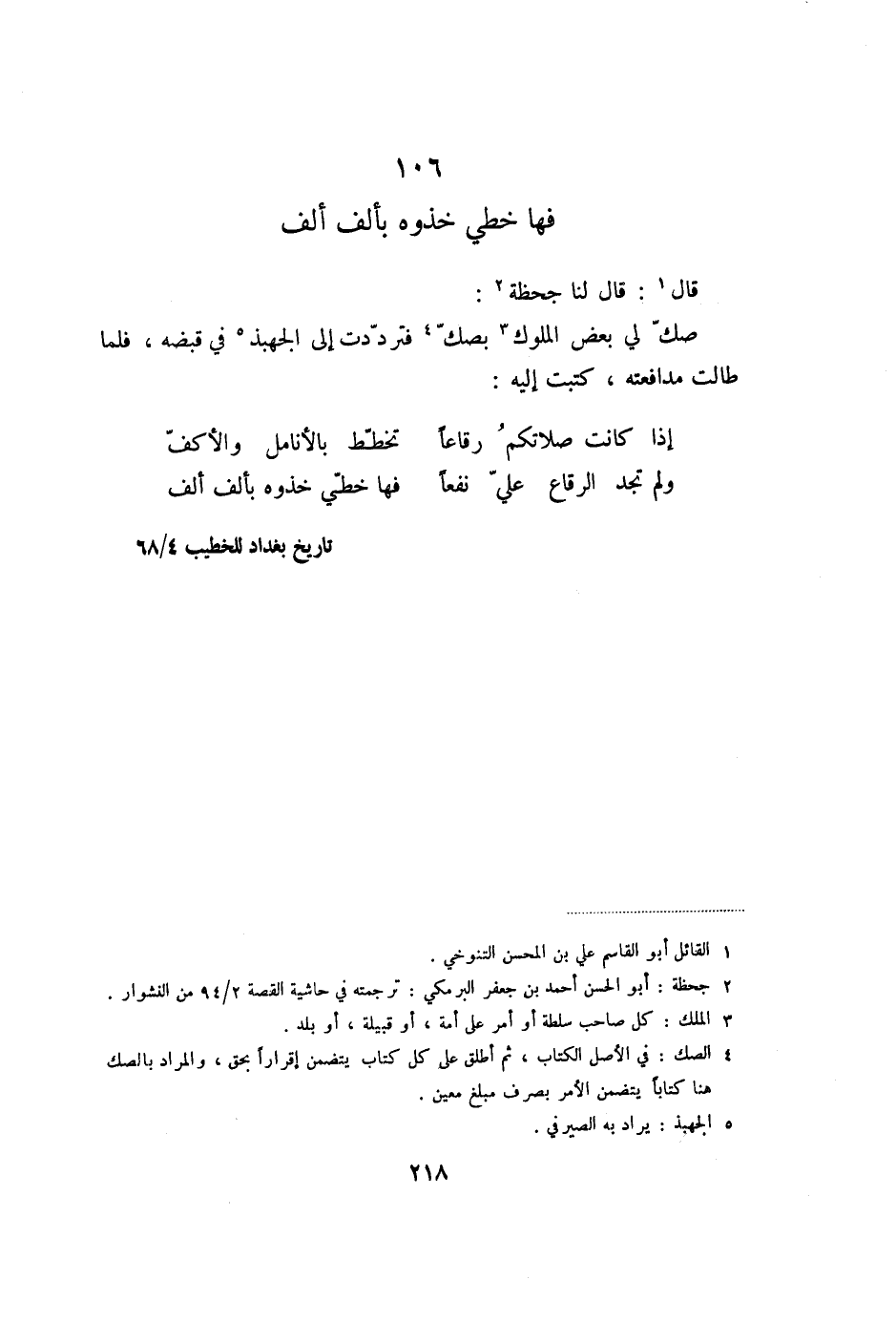 صكّ لي بعض الملوك «3» بصكّ «4» فتردّدت إلى الجهبذ «5» في قبضه، فلما طالت مدافعته، كتبت إليه: