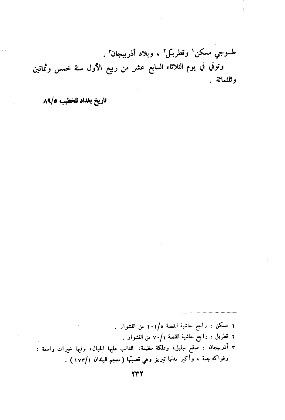 طسوجي مسكن «1» وقطربّل «2» ، وبلاد أذربيجان «3» .