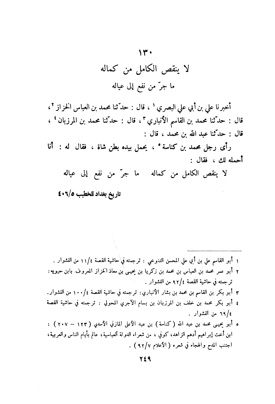 130 لا ينقص الكامل من كماله ما جرّ من نفع إلى عياله