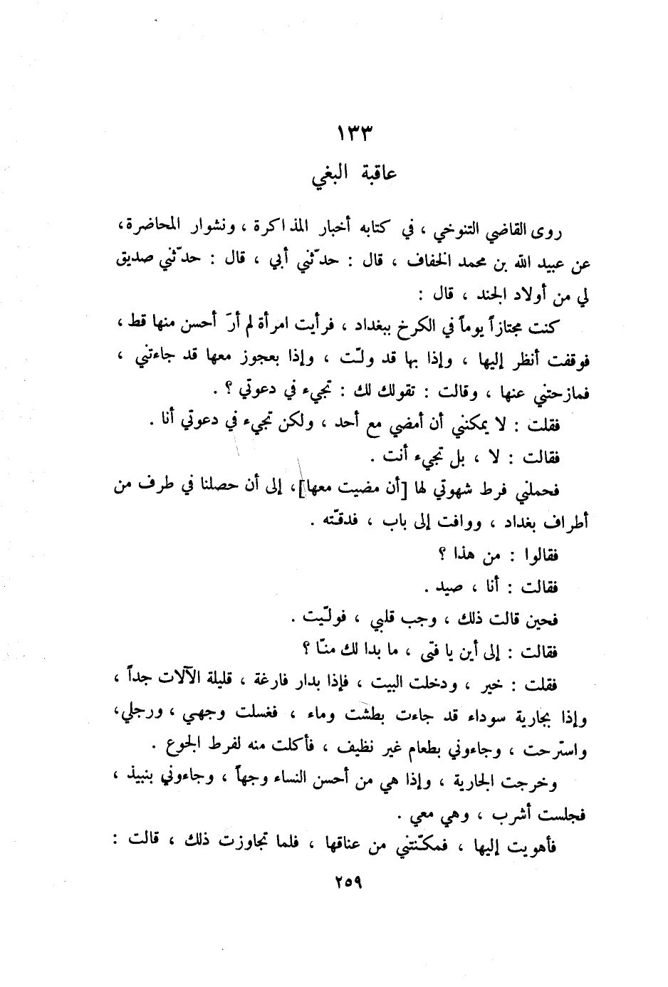 فحملني فرط شهوتي لها [أن مضيت معها] ، إلى أن حصلنا في طرف من أطراف بغداد، ووافت إلى باب، فدقّته.