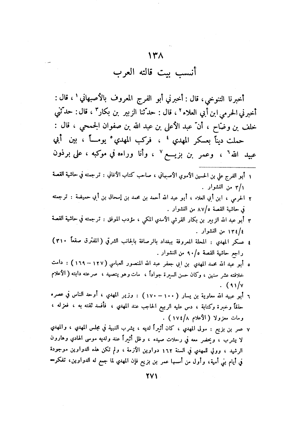 حملت دينا بعسكر المهدي «4» ، فركب المهدي «5» يوما، بين أبي عبيد الله «6» ، وعمر بن بزيع «7» ، وأنا وراءه في موكبه، على برذون