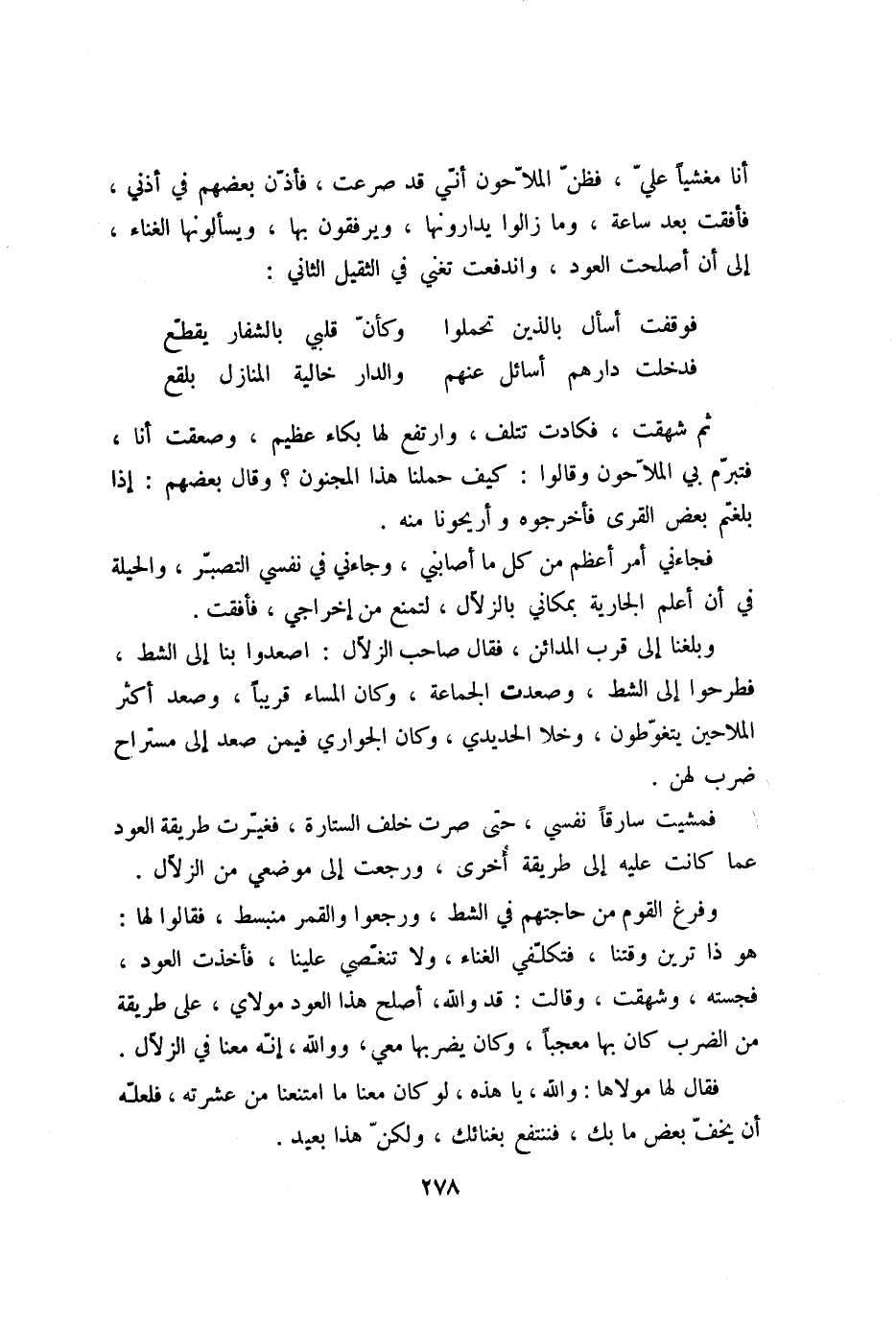 ثم شهقت، فكادت تتلف، وارتفع لها بكاء عظيم، وصعقت أنا، فتبرّم بي الملّاحون وقالوا: كيف حملنا هذا المجنون؟ وقال بعضهم: إذا بلغتم بعض القرى فأخرجوه وأريحونا منه.
