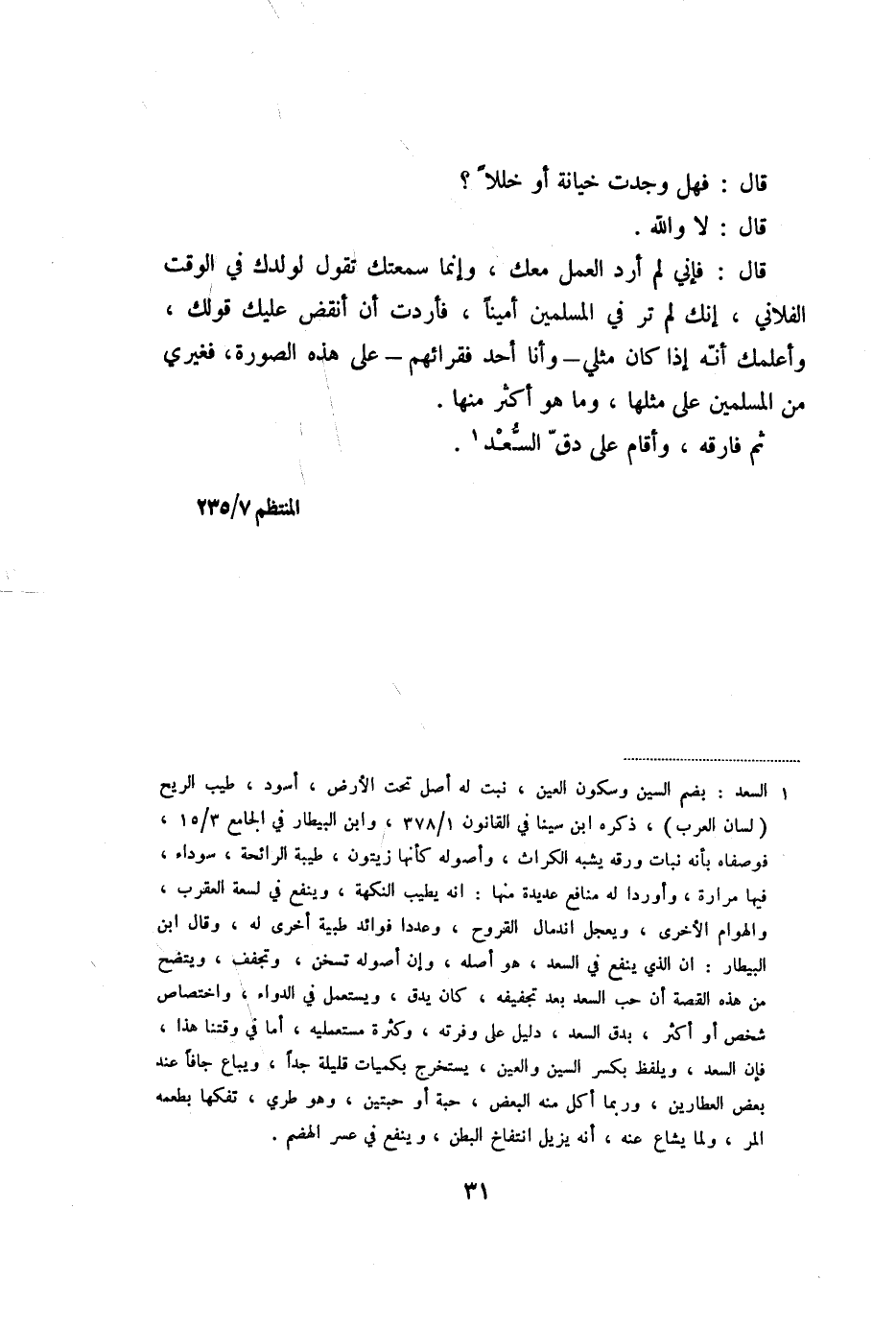قال: فإني لم أرد العمل معك، وإنما سمعتك تقول لولدك في الوقت الفلاني، إنك لم تر في المسلمين أمينا، فأردت أن أنقض عليك قولك، وأعلمك أنّه إذا كان مثلي- وأنا أحد فقرائهم- على هذه الصورة، فغيري من المسلمين على مثلها، وما هو أكثر منها.