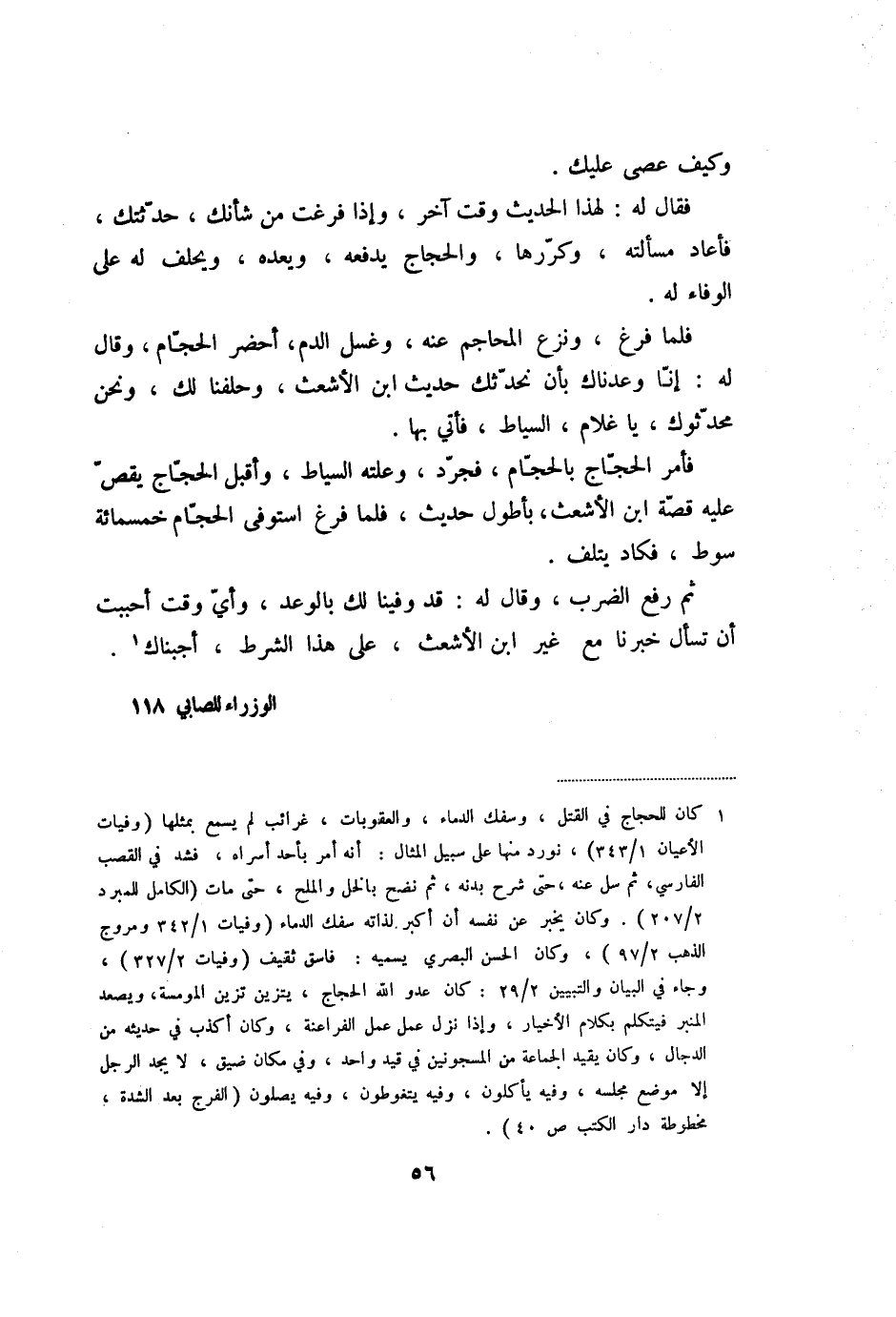 ثم رفع الضرب، وقال له: قد وفينا لك بالوعد، وأيّ وقت أحببت أن تسأل خبرنا مع غير ابن الأشعث، على هذا الشرط، أجبناك «1» .