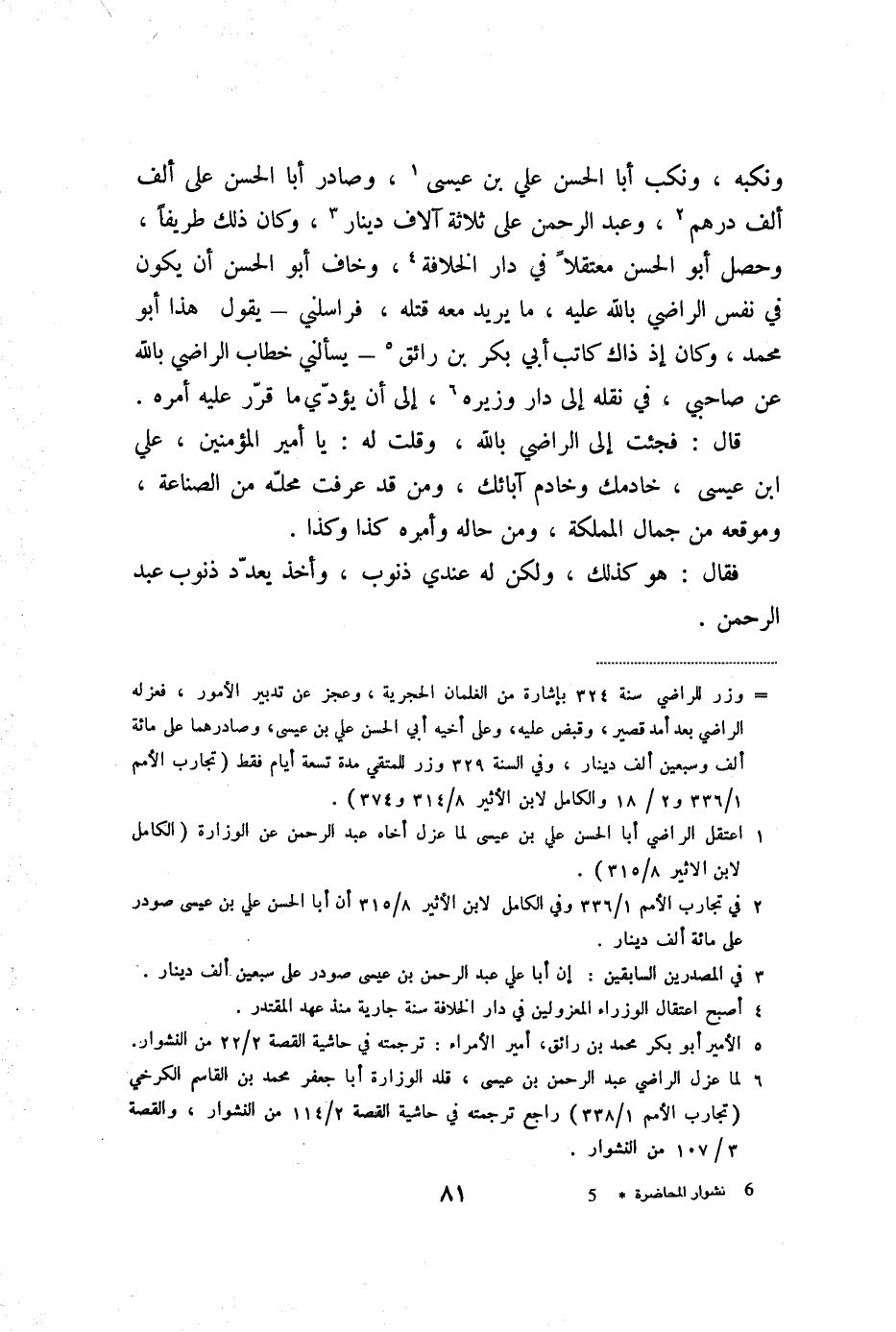 كتاب نشوار المحاضرة وأخبار المذاكرة (اسم الجزء: 5)