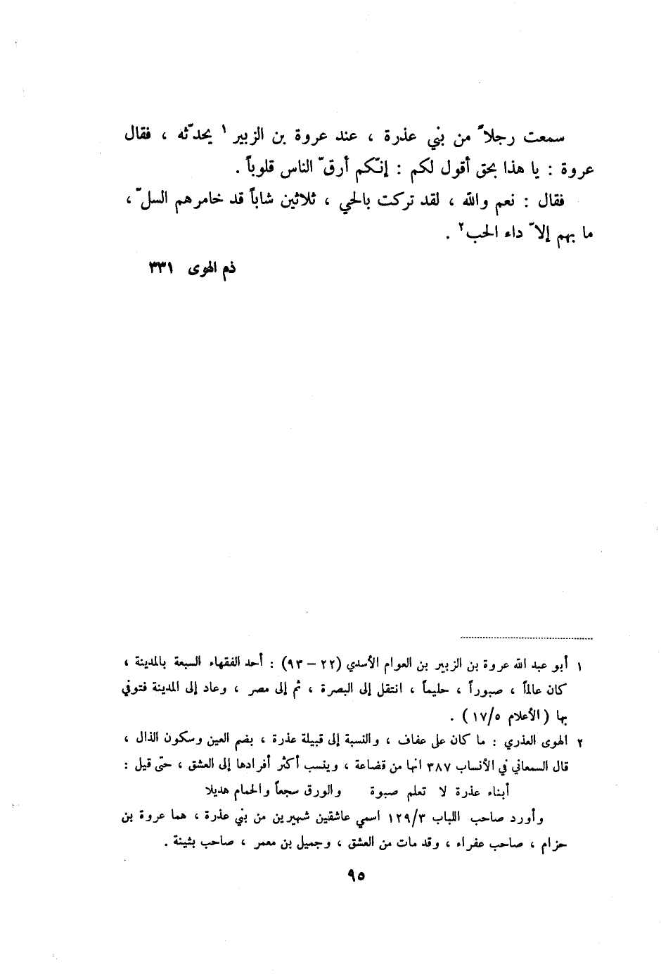 سمعت رجلا من بني عذرة، عند عروة بن الزبير «1» يحدّثه، فقال عروة: يا هذا بحق أقول لكم: إنّكم أرقّ الناس قلوبا.