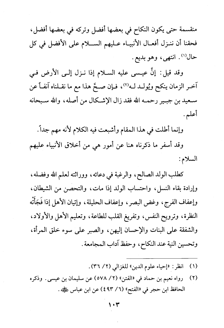 وقد قيل: إنَّ عيسى عليه السلام إذا نزل إلى الأرض في آخر الزمان ينكح ويُولد له (¬2)، فإن صحَّ هذا مع ما نقلناه آنفاً عن سعيد بن جبير رحمه الله فقد زال الإشكال من أصله، والله سبحانه أعلم.