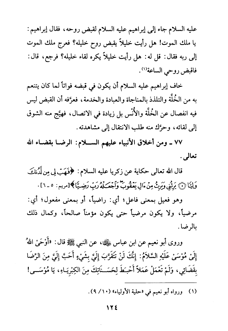 77 - ومن أخلاق الأنبياء عليهم السلام: الرضا بقضاء الله تعالى.
