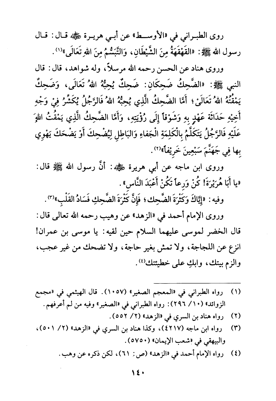 وفيه: "إِيَّاكَ وَكَثْرَةَ الضَّحِك؛ فَإِن كَثْرَةَ الضَّحِكِ فَسَادُ القَلْبِ" (¬3).