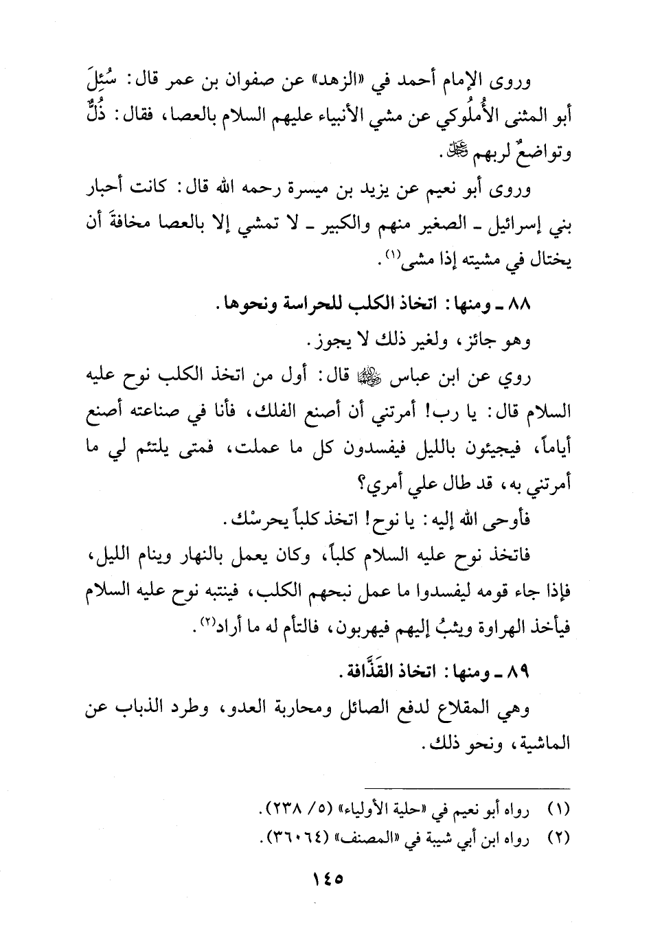 88 - ومنها: اتخاذ الكلب للحراسة ونحوها.