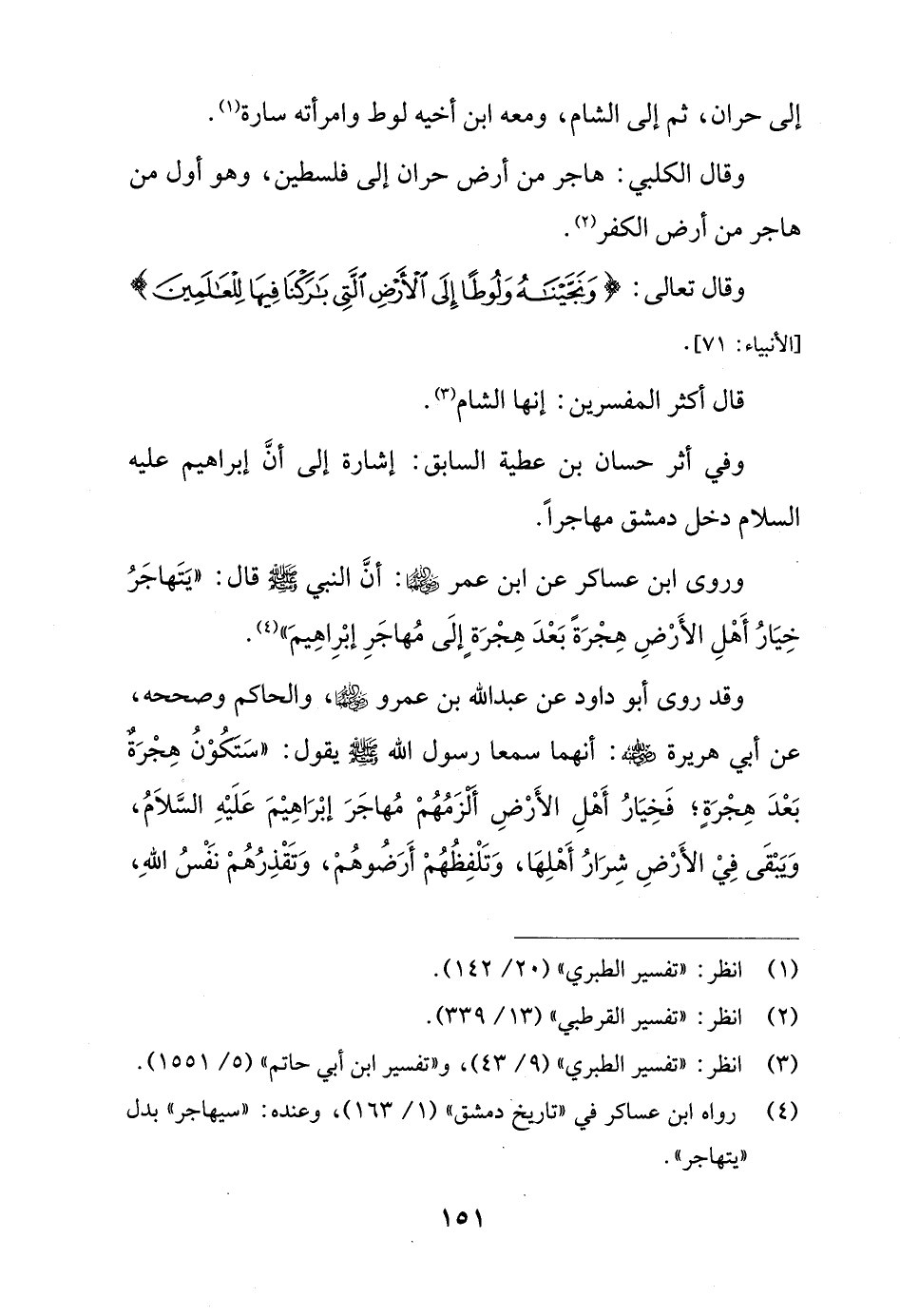 وقال تعالى: {وَنَجَّيْنَاهُ وَلُوطًا إِلَى الْأَرْضِ الَّتِي بَارَكْنَا فِيهَا لِلْعَالَمِينَ} [الأنبياء: 71].