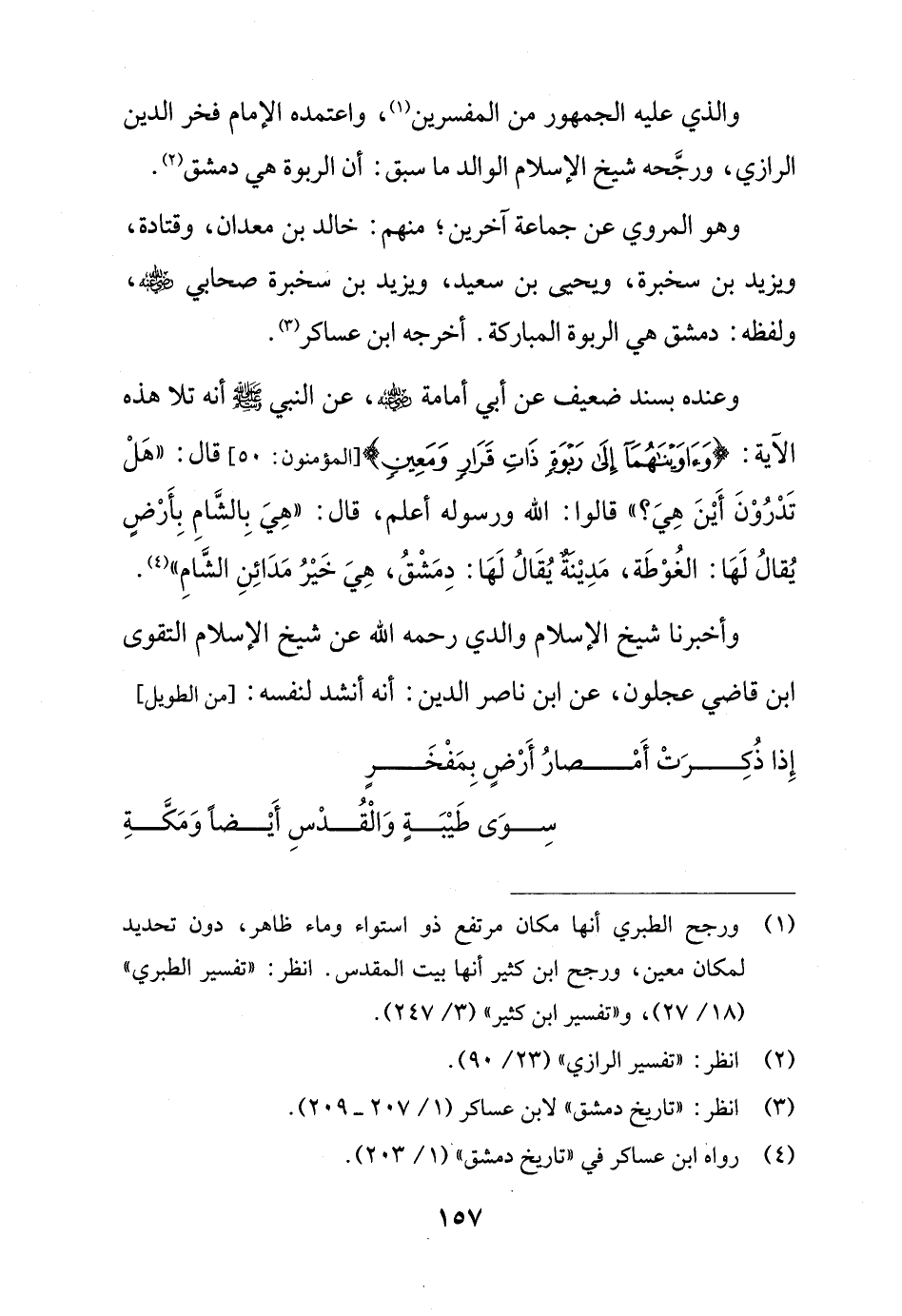والذي عليه الجمهور من المفسرين (¬1)، واعتمده الإمام فخر الدين الرازي، ورجَّحه شيخ الإسلام الوالد ما سبق: أن الربوة هي دمشق (¬2).