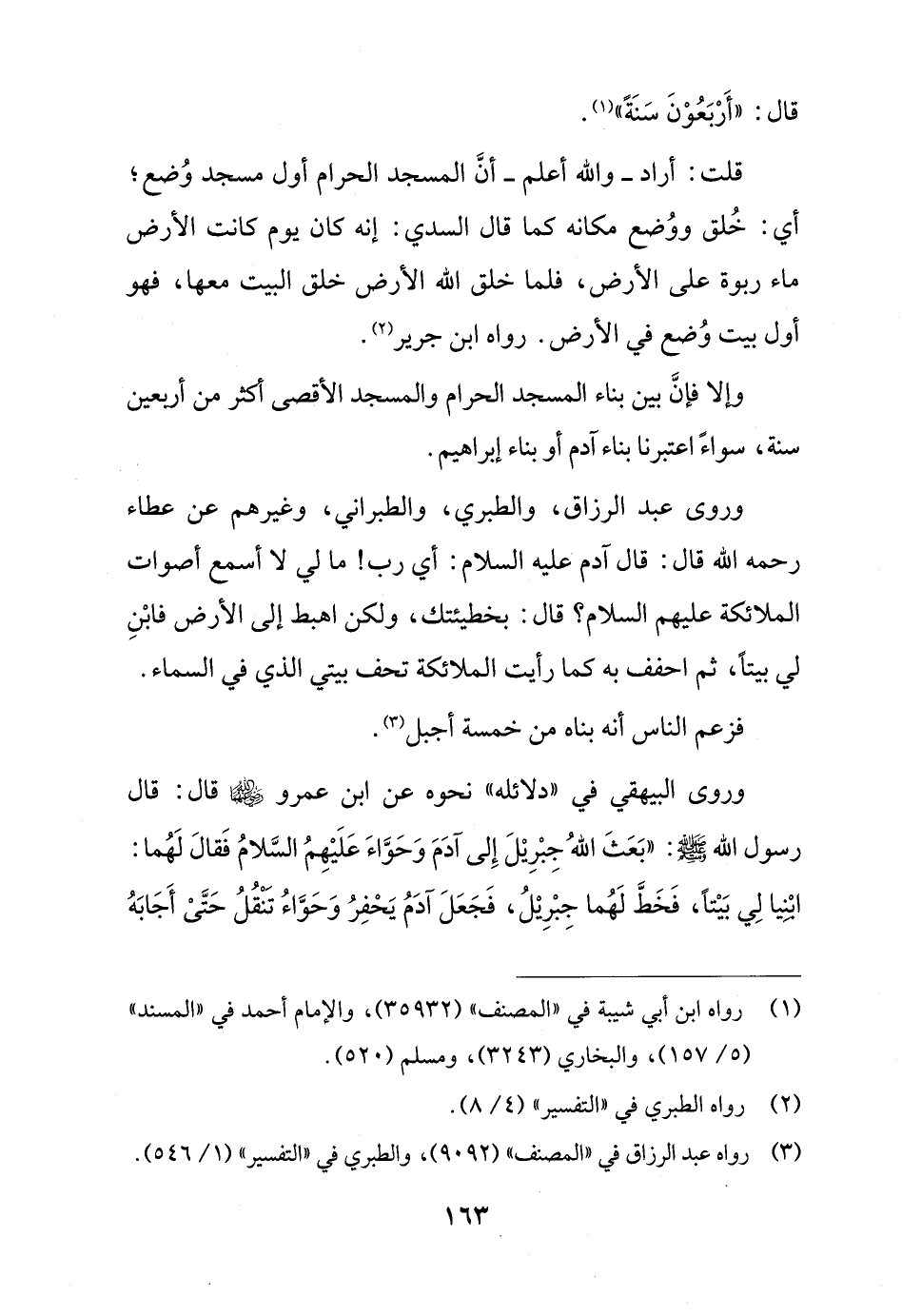 وإلا فإنَّ بين بناء المسجد الحرام والمسجد الأقصى أكثر من أربعين سنة، سواءًا عتبرنا بناء آدم أو بناء إبراهيم.