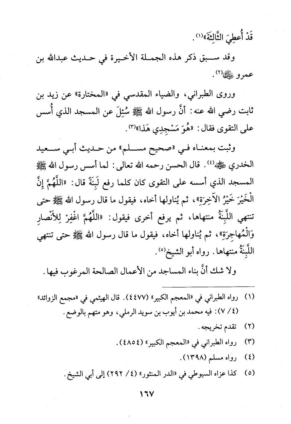 وروى الطبراني، والضياء المقدسي فى "المختارة" عن زيد بن ثابت رضي الله عنه: أنَّ رسول الله - صلى الله عليه وسلم - سُئِلَ عن المسجد الذي أُسس على التقوى فقال: "هُوَ مَسْجِدِي هَذا" (¬3).