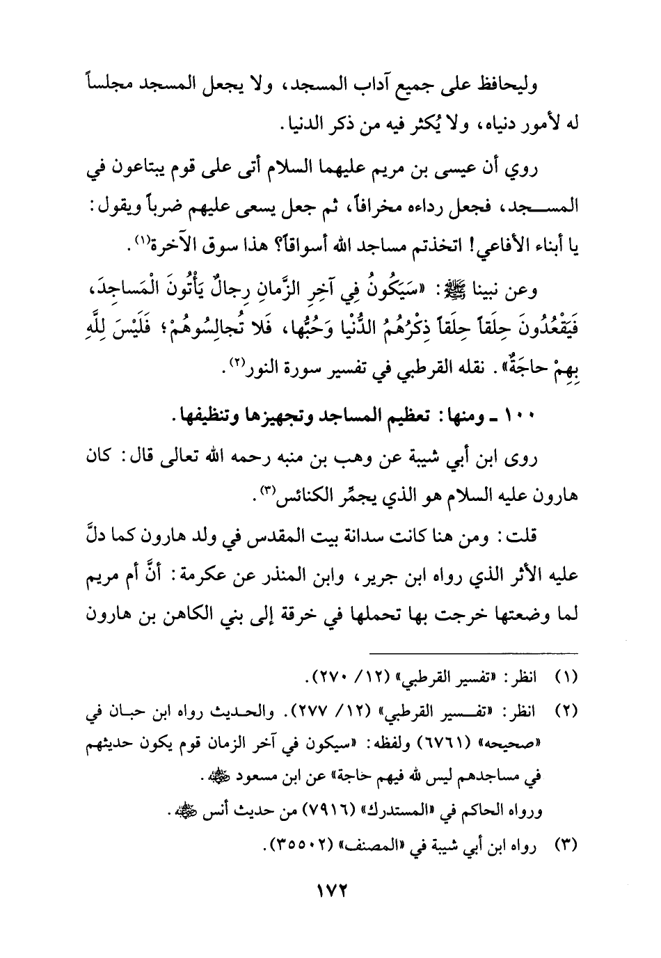 100 - ومنها: تعظيم المساجد وتجهيزها وتنظيفها.
